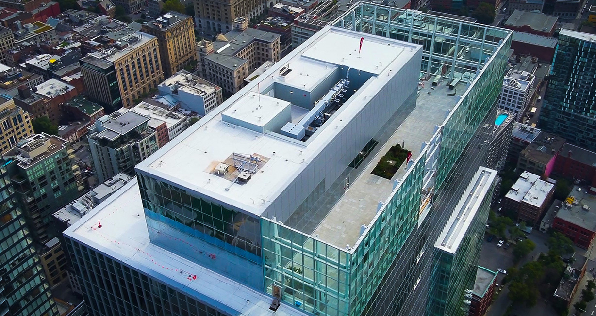 L’entreprise a été récompensée pour les travaux de toiture réalisés sur le nouveau siège social de la Banque Nationale, une tour de 40 étages érigée au centre-ville de Montréal. Ce chantier impressionnant incluait l’exécution de plus de 43 000 pieds carrés de toitures, répartis sur 10 étages, combinant à la fois toiture conventionnelle, toits inversés et toitures végétalisées.